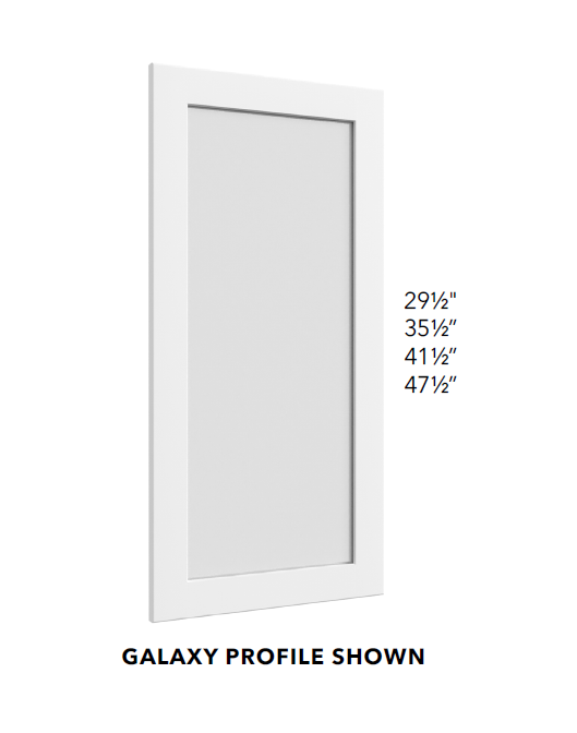 | Constructed with mortise and tenon joints | Doors consist of 3/8” thick recessed MDF/veneer center panel |
