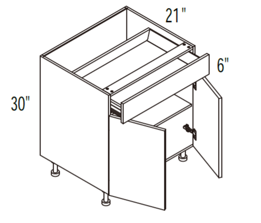 Greendale Matte Ash - Single Drawer Single Door Vanity Base Cabinet - 6" height drawer and 24" height door - 21"W x 21"D x 30"H
