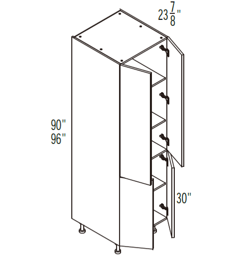 Greendale Matte Gray - 96" High 24" Wide Two Doors Pantry Cabinet - lower door is 30" height and Doors of horizontal grain have joints, Height of pantry include feet's height